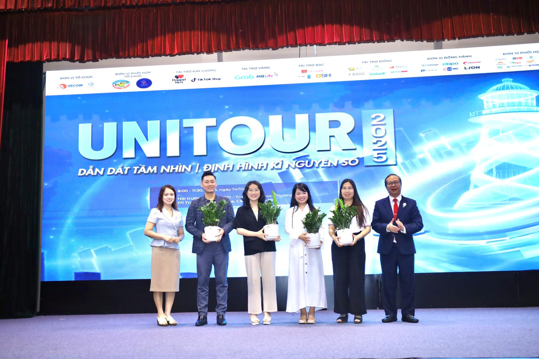 Các diễn giả chia sẻ trong phần tọa đàm tại Chương trình UNITOUR 2025 với chủ đề “Dẫn dắt tầm nhìn – Định hình kỷ nguyên số”
